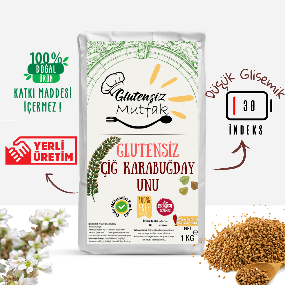 Glutensiz çiğ karabuğday unu, (Kuzukulağıgiller) Polygonaceae familyasından Fagopyrum esculentum Moench cinsine ait karabuğday bitkisinden elde edilir. Tahıl benzeri olarak adlandırılan
